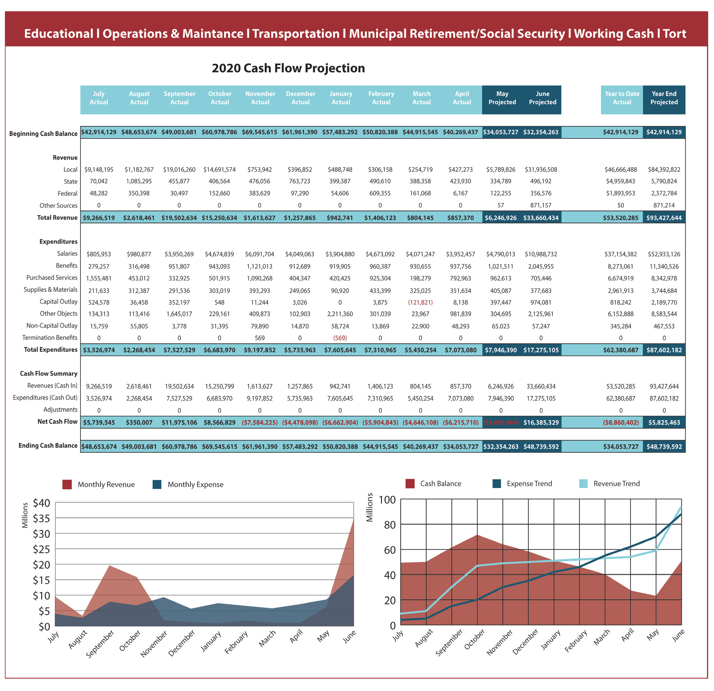 Having a tool that allows you to measure the impact of economic challenges and develop and model potential solutions can help manage risk and ease anxiety for you, your administrative team and school board. To best do this, you need a cash flow.